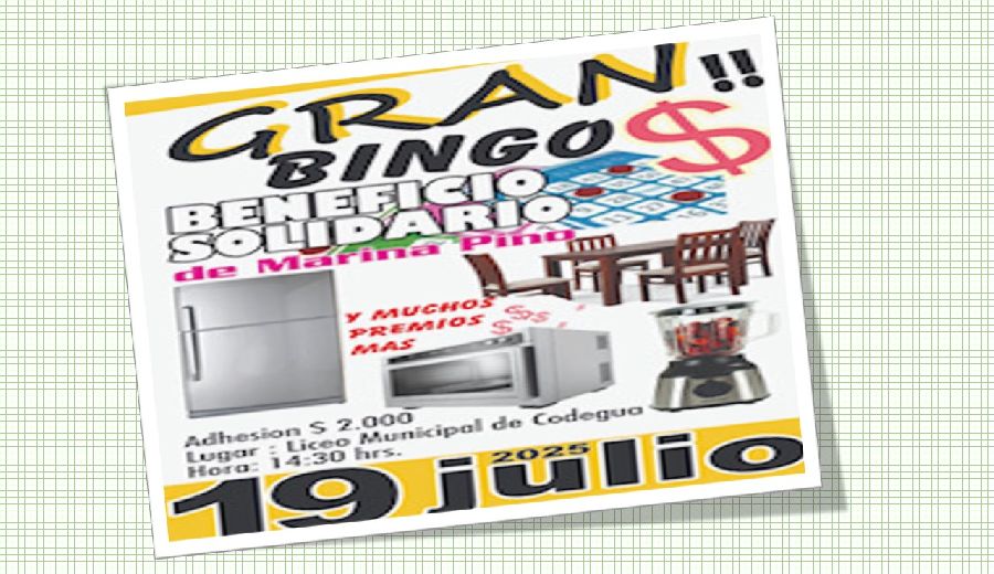 BINGO SOLIDARIO 19 DE JULIO EN GRANEROS, EN BENEFICIO DE